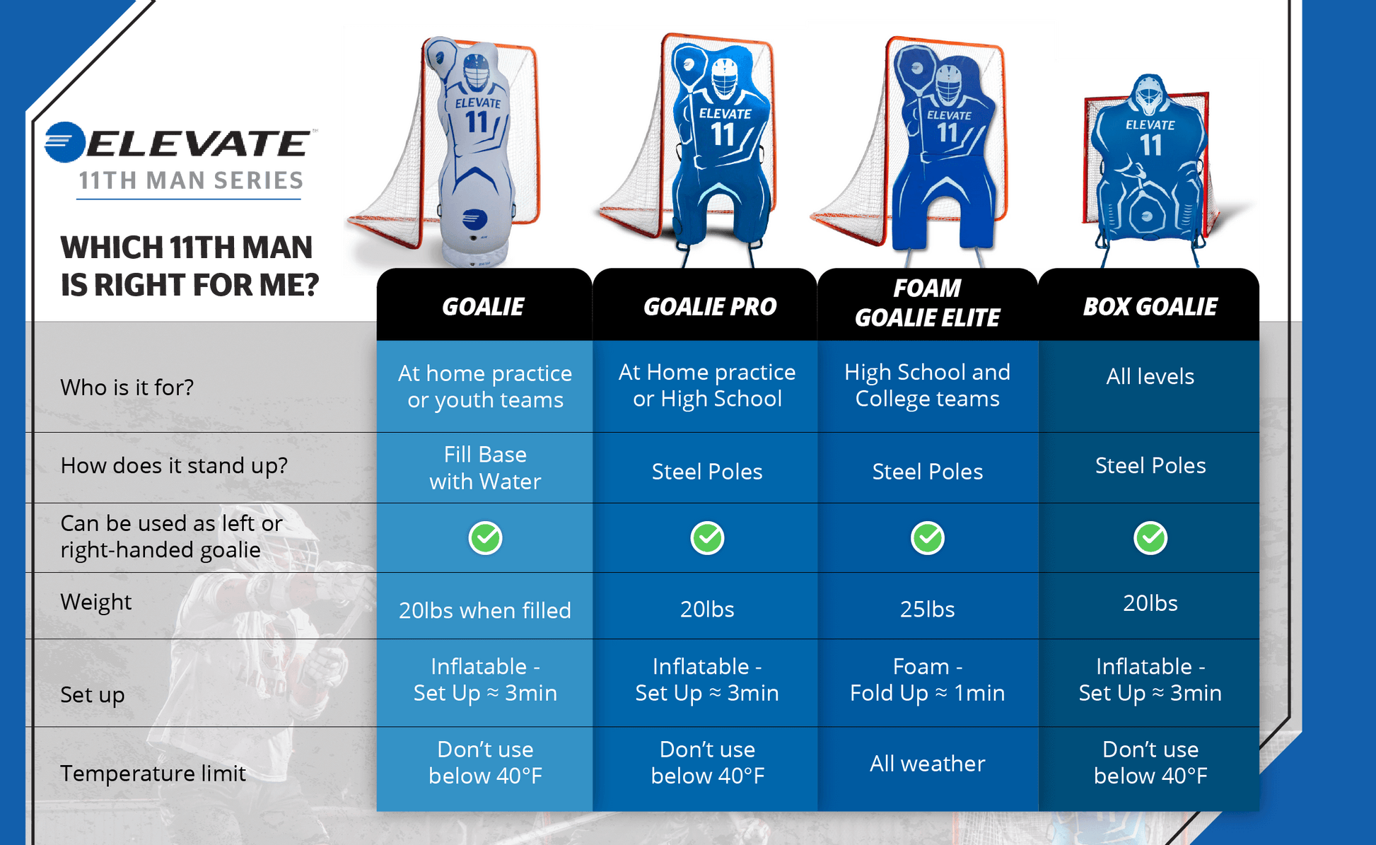 - Reversible to use as a left or right handed goalie